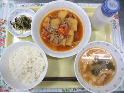 今日のオススメは、主菜の「トマト肉じゃが」です。昨年も出しましたが、今回はレシピを変えて、削り節のだしを使った和風の味に仕上げています。使った調味料もお醤油と砂糖だけのとてもシンプルな味付けです。野菜そのものの甘みを感じながら食べて欲しいです。