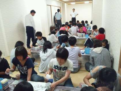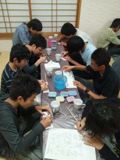 夕食後は、クラスごとに交代で、マグカップの絵付けを大広間でやりました!今年は、しっかり下絵も描いてきたので、みんななかなかのできばえです。完成が楽しみです
