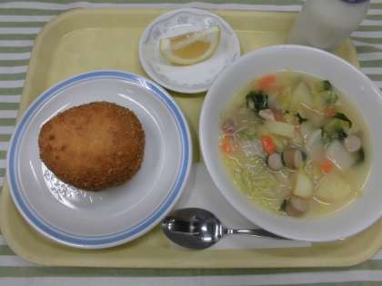 【献 立】 手作りカレーパン 牛乳 ポトフ 日向夏