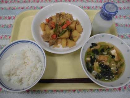 【献 立】 ごはん 牛乳 みそ汁 肉じゃが