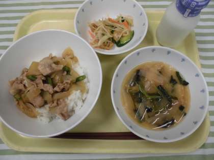 【献 立】 豚丼 牛乳 みそ汁 もやしの甘酢あえ