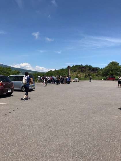 1年生は獅子岩に到着しました。写真のように天気は良さそうです。暑くなりそうな感じですね。これから飯盛山山頂まで登り、昼食の時間。自宅から持ってきたお弁当を食べ、その後、登山口まで下り、バスで清泉寮に行き、ソフトクリームを食べます。その後は一路宿泊する八ヶ岳の林間学園まで。開園式等を経て、宿舎での三泊四日の仲間との体験が始まります。写真は獅子岩です。