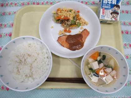 ・ごはん ・鮭のごまみそ焼き ・菊花和え