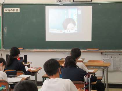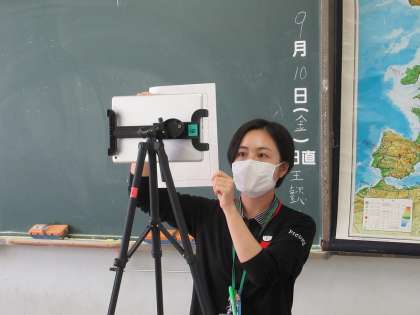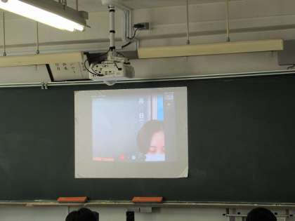 写真は1年生のiPadを活用した合同授業です。学習発表会(10月23日土曜日実施)での1年生発表の壁新聞の作成についての合同授業の様子です。別室でiPadを使った講義をクラスでスクリーンを使って映し出すものです。これで、もしというときに実際にiPadを使った授業を今回のやり方を応用して行います。