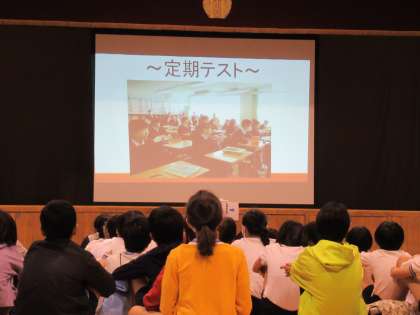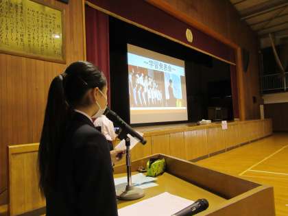 次に生徒会役員による中学校生活や行事の紹介がありました。