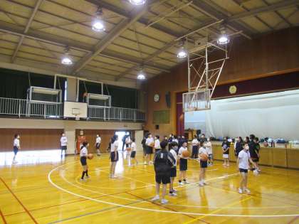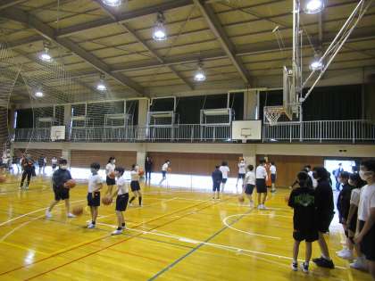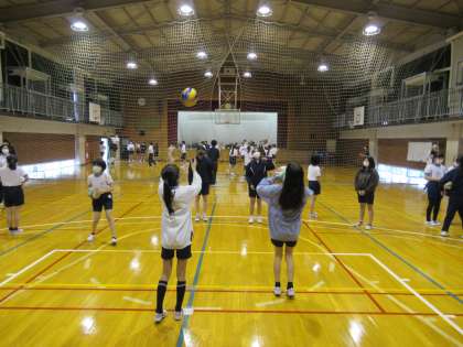 バレーボール部とバスケットボール部の体験の様子です。