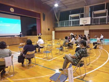 授業の後、協議会を行い、教員・保護者・地域が一体となって、