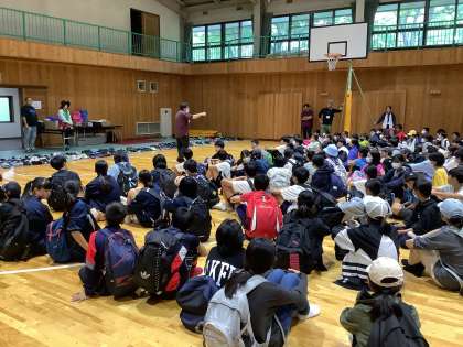 体育館に集合し説明を受けた後、ホテル内の飯盒炊爨場に移動しました。