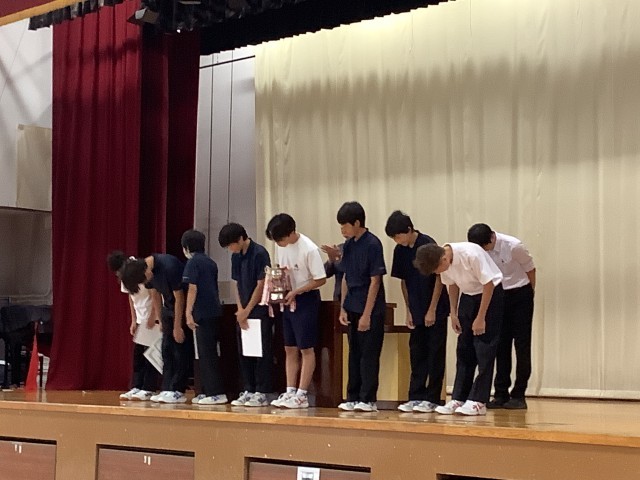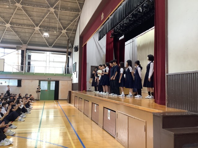 9月29日(月)部活動表彰 公開日 2025/09/29 更新日 2025/09/29 学校日記 今朝の生徒会朝礼での表彰の様子です。吹奏楽部、卓球部、バトミントン部、ソフトテニス部、陸上部、野球部と多くの部活動が素晴らしい成績を残し、表彰されました。 いいね(23)