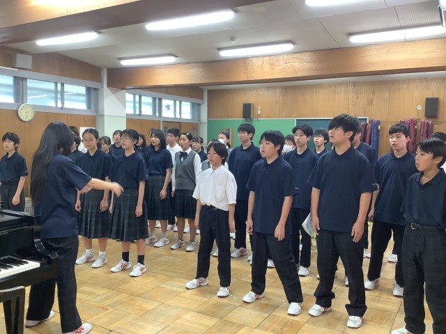 10月3日(金)特別練習開始 公開日 2025/10/03 更新日 2025/10/03 学校日記 10月17日に行われる合唱コンクールに向けて、クラスでの特別練習が始まりました。実行委員、パートリーダー、指揮者、伴奏者を中心に、より良い合唱を創り上げようとどのクラスも頑張っていました。 いいね(0)