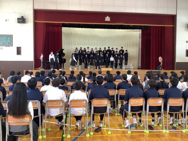 各クラスが体育館にて課題曲と自由曲を歌うだけでなく、入場から退場まで本番の動きを確認しました。当日は合唱だけでなく入退場も審査項目となります。最初から最後まで気を抜かずに臨みましょう。