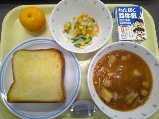 <献立> レモンシュガートースト トマトシチュー フレンチサラダ