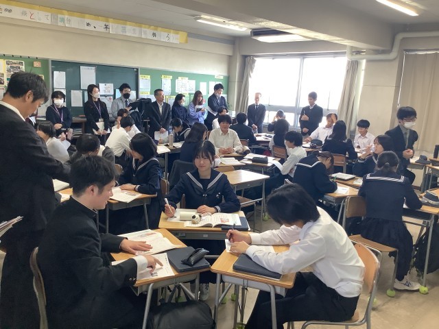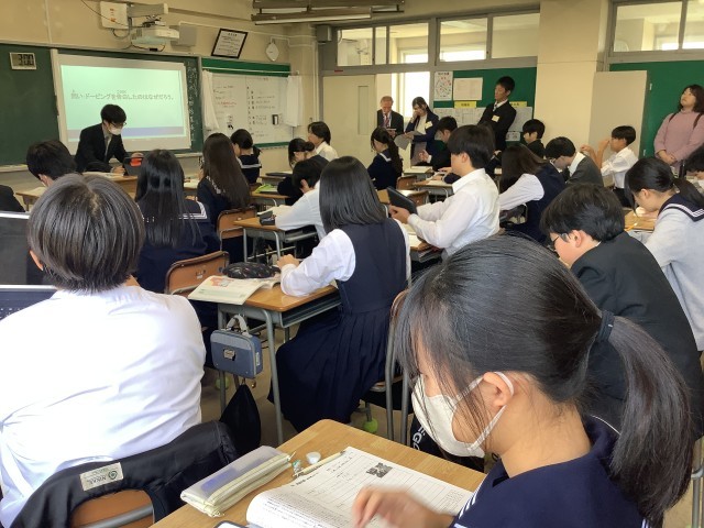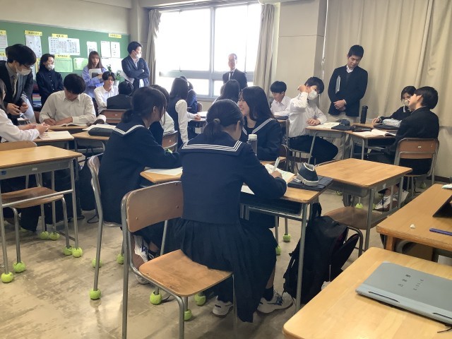 グループで積極的に話し合い、iPadを用いて他の人の意見も参照するなど活発な時間でした。