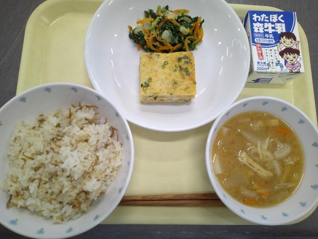 11月20日献立 公開日 2025/11/20 更新日 2025/11/20 給食 <献立> 煮じゃこご飯 擬製豆腐 ごま和え 味噌汁<産地> 人参(北海道)、玉ねぎ(北海道)、万能ねぎ(福岡県)、ほうれん草(埼玉県)、白菜(茨木県)、大根(千葉県)、えのき(長野県)、長ネギ(栃木県)、豚肉(鹿児島県)、鶏卵(群馬県) いいね(0)