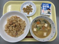 11月26日献立 公開日 2025/11/28 更新日 2025/11/28 給食 <献立> 甘辛大豆ご飯 鰆の西京焼き じゃが芋と豚肉の香味炒め 味噌汁<産地> 生姜(高知県)、にんにく(青森県)、じゃが芋(北海道)、人参(千葉県)、いんげん(長崎県)、長ネギ(群馬県)、さわら(韓国産)、豚肉(鹿児島県) いいね(2)
