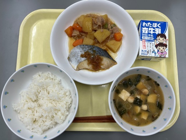 〈献立〉ご飯 鰆の韓国風焼き 肉じゃが なめこの味噌汁