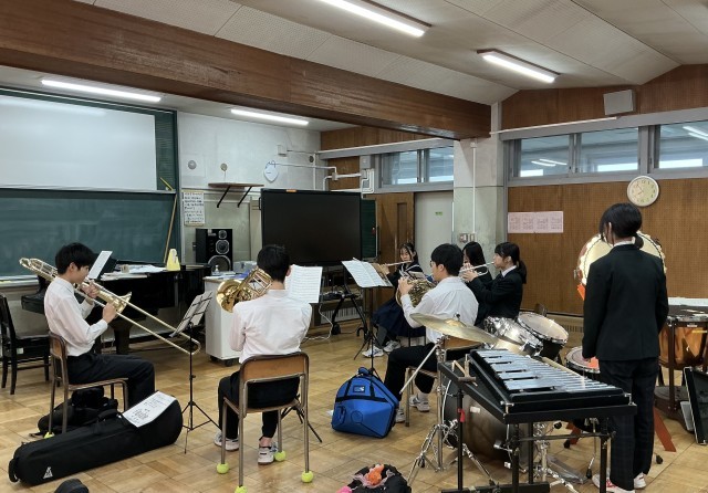 12月24日に本校で行うクリスマスコンサート、そして1月に行われるアンサンブルコンテストに向けて、吹奏楽部員が7:30〜自主的にアンサンブルの練習を行なっています。自分たちでイメージを膨らませ、練習計画を立て、都度練習内容も工夫しながら本当に頑張って練習しています。本番の演奏が今から楽しみです!