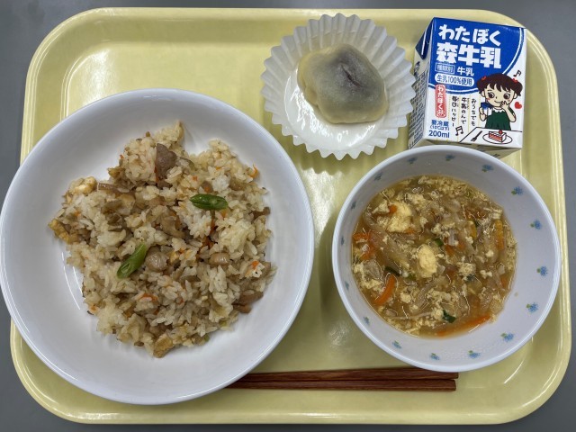 〈献立〉鶏めし 切干大根と卵の味噌汁 いきなり団子