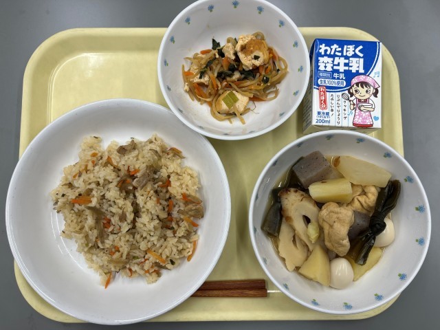 今日の給食は、おでんです。寒い冬にぴったりの献立です。練り物は食べ応えがありますね。