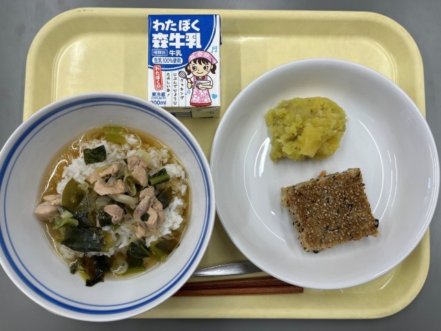 〈産地〉ねぎ(埼玉県)、小松菜(東京都)、玉ねぎ(北海道)、人参(埼玉県)、生姜(高知県)、さつま芋(千葉県)、鶏もも肉(静岡県)、鶏ひき肉(静岡県)、カットわかめ(韓国)、ひじき(長崎県)