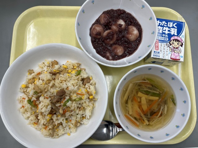1月10日献立 公開日 2026/01/10 更新日 2026/01/10 給食 〈献立〉五目寿司 沢煮椀 白玉しるこ〈産地〉人参(埼玉県)、れんこん(茨城県)、いんげん(沖縄県)、ごぼう(青森県)、大根(神奈川県)、竹の子(静岡県)、えのき(長野県)、さやえんどう(愛知県)、油揚げ(愛知県・佐賀県)、鶏もも肉(静岡県)、豚肉(鹿児島県)、鶏卵(群馬県) いいね(4)