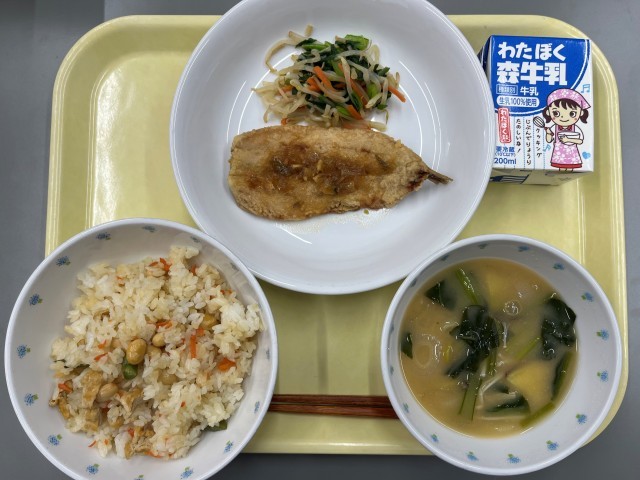 〈献立〉大豆ご飯 いわしの香味揚げ ナムル 味噌汁