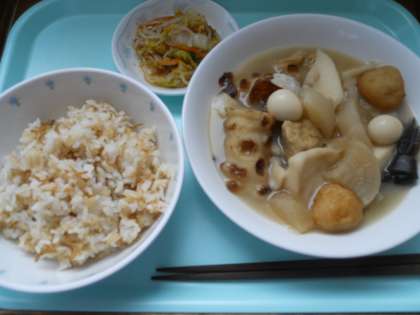 12月2日水曜日 公開日 2015/12/02 更新日 2015/12/02 給食 じゃこご飯 おでん 白菜の梅肉和え 牛乳 産地情報 大根(神奈川)白菜(群馬)もやし(千葉)人参(千葉)梅干し(和歌山)ちりめんじゃこ(広島) いいね(0)