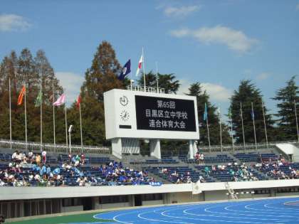 秋空高く、さわやかな1日。第65回目黒区立中学校連合体育大会が駒沢陸上競技場で行われました。選手達はより速く、より高く、より遠くをめざして最大限の力を発揮し、応援団はその選手達に精一杯の声援を送りながらすばらしい1日を過ごすことができました。