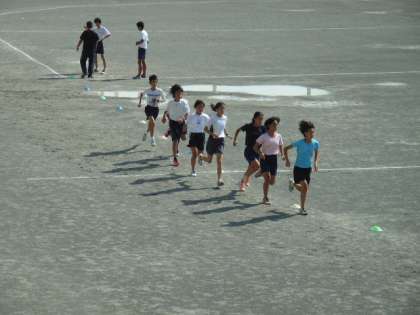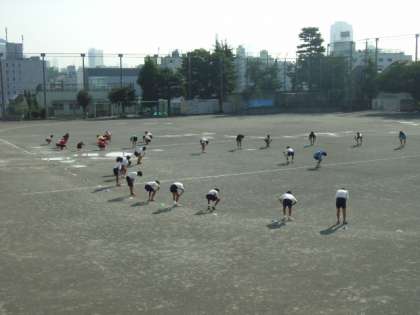 陸上部の練習に合わせて、区連体に向けた練習も始まりました。