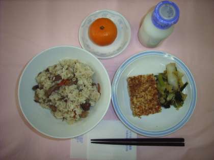 もぶりご飯(愛媛地方の混ぜご飯)は大豆もはいった具だくさんです。