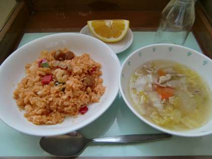 ジャンバラヤは米、肉、野菜を使ったアメリカの料理です。スペイン料理のパエリアをもとにした料理と言われ、少し辛味のある味付けで食が進みます。