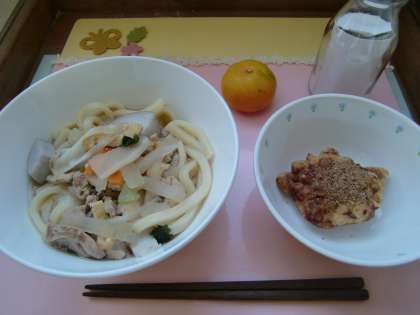 しっぽくうどんは、讃岐の冬の代表的な郷土料理で、数種類の季節の野菜を、汁とともに煮込み、ゆでたうどんの上からかけたものです。年末には年越しそばの代わりに食べる家庭もあるそうです。