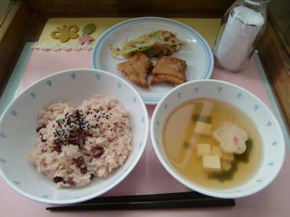 今日は開校記念日をお祝いしてお赤飯を炊きました。