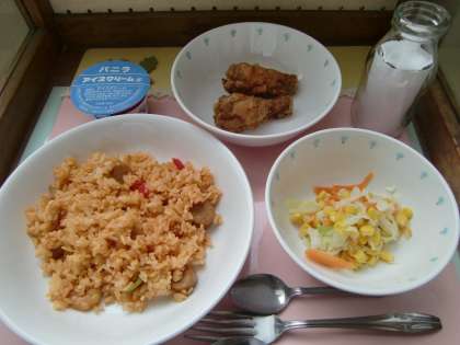 今日はアメリカ料理の日です。アメリカは、たくさんの国の移民とアメリカ先住民の食文化が混ざり合いながら発達してきました。ハンバーガーやチキンなど手軽に食べられる料理は、高カロリーなものが多く、肥満が大きな問題になっています。毎日の食事としてはおすすめできませんが、今日は外国料理にふれる機会として楽しんでください。