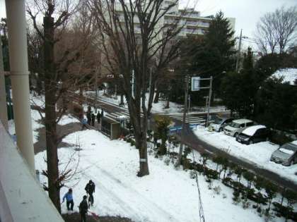 校内の雪が少しずつ溶け始めています。また、生徒達も早朝より雪かきに参加しています。