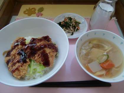 全国学校給食週間最終日は現代の給食です。給食では、世界中の料理などと共に日本各地の郷土料理も提供するようになりました。今日はカツを卵でとじず、ソースでいただく福井県のソースかつ丼です。各地の郷土料理はこれからも出していきます。お楽しみに。