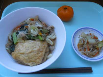 1月9日土曜日 公開日 2016/01/09 更新日 2016/01/09 給食 〈鏡開き献立〉 力うどん 白菜の梅肉和え みかん 牛乳 産地情報 鶏肉(鳥取)人参(千葉)玉ねぎ(北海道)長ネギ(千葉)小松菜(埼玉)白菜(茨城)もやし(千葉)みかん(静岡)梅干し(和歌山)もち(佐賀) いいね(0)