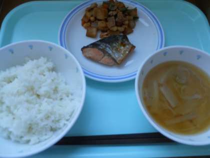1月14日木曜日 公開日 2016/01/14 更新日 2016/01/14 給食 ご飯 鮭の幽庵焼き 変わり五目豆 味噌汁 牛乳 産地情報 鮭(北海道)ゆず(高知)じゃがいも(北海道)人参(千葉)ピーマン(高知)大根(神奈川)長ネギ(千葉)豚肉(青森) いいね(0)