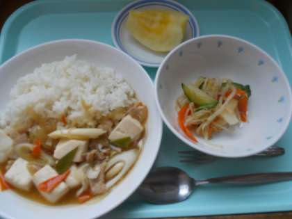 人参(千葉)玉ねぎ(北海道)長ネギ(千葉)絹さや(北海道)もやし(千葉)大根(神奈川)きゅうり(宮崎)しょうが(高知)りんご(青森)豚肉(岩手)ちりめんじゃこ(広島)