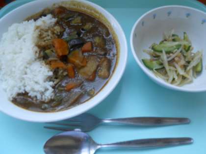 7月10日月曜日 公開日 2017/07/10 更新日 2017/07/10 給食 夏野菜カレーライス もやしのサラダ 牛乳 産地情報 鶏肉(岩手)しょうが(高知)にんにく(青森)玉ねぎ(愛知)人参(千葉)じゃがいも(長崎)かぼちゃ(鹿児島)なす(埼玉)いんげん(青森)もやし(山梨)きゅうり(岩手) いいね(0)