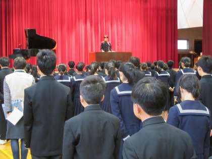 冬休み明け全校集会(1月9日) 公開日 2018/01/09 更新日 2018/01/09 学校行事 新年あけましておめでとうございます。 平成30年1月9日(火)冬休み明けの全校集会を行いました。一部、遅刻した生徒もいましたが、みんな元気に登校しました。 いいね(0)