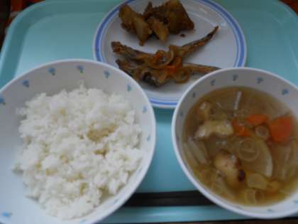 1月18日木曜日 公開日 2018/01/18 更新日 2018/01/18 給食 ご飯 ししゃもの南蛮漬け じゃがいもの土佐和え のっぺい汁 牛乳 産地情報 玉ねぎ(北海道)人参(千葉)じゃがいも(北海道)大根(神奈川)ごぼう(青森)里芋(埼玉)長ネギ(千葉)しょうが(高知)シシャモ(ノルウエー) いいね(0)