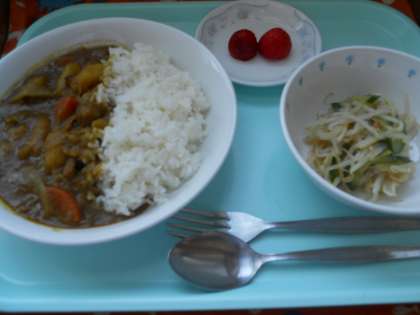 1月29日月曜日 公開日 2018/01/29 更新日 2018/01/29 給食 チキンカレーライス もやしのサラダ いちご 牛乳 産地情報 鶏肉(宮崎)しょうが(高知)にんにく(青森)玉ねぎ(北海道)人参(千葉)じゃがいも(北海道)もやし(千葉)きゅうり(宮崎)いちご(福岡) いいね(0)
