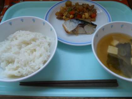 2月19日月曜日 公開日 2018/02/19 更新日 2018/02/19 給食 ご飯 鯖の塩焼き 変わり五目豆 味噌汁 牛乳 産地情報 鯖(ノルウエー)わかめ(徳島)豚肉(岩手)じゃがいも(北海道)人参(東京)ピーマン(宮崎)長ネギ(埼玉) 白身魚が鯖に変更になったので、塩焼きになりました。 いいね(0)