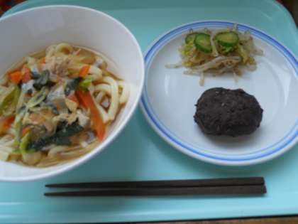 3月13日火曜日 公開日 2018/03/13 更新日 2018/03/13 給食 <お彼岸献立> 五目うどん 一塩野菜 ぼたもち 産地情報 鶏肉(鳥取)人参(千葉)玉ねぎ(北海道)長ネギ(千葉)小松菜(埼玉)きゅうり(宮崎)キャベツ(愛知)もやし(千葉)もち米(新潟)小豆(北海道) いいね(0)