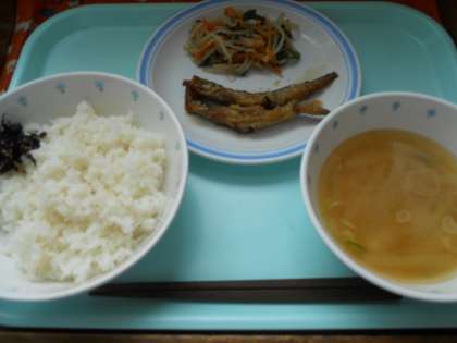 3月15日木曜日 公開日 2018/03/15 更新日 2018/03/15 給食 ご飯 ひじきふりかけ ししゃもの甘露煮 ごま和え 味噌汁 牛乳 産地情報 ほうれん草(群馬)もやし(千葉)人参(千葉)大根(神奈川)長ネギ(千葉)シシャモ(ノルウエー)ひじき(長崎) いいね(0)
