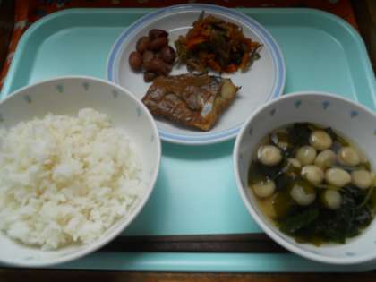 9月20日木曜日 公開日 2018/09/20 更新日 2018/09/20 給食 ご飯 鯖の味噌煮 五目金平 煮豆 すまし汁 牛乳 産地情報 鯖(ノルウエー)わかめ(徳島)しょうが(高知)ごぼう(群馬)人参(北海道)いんげん(青森)三つ葉(千葉)金時豆(北海道) いいね(0)