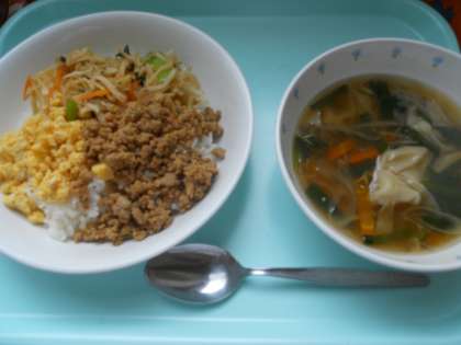 10月5日金曜日 公開日 2018/10/05 更新日 2018/10/05 給食 ビビンバ ワンタンスープ 牛乳 産地情報 豚肉(岩手)しょうが(高知)にんにく(青森)長ネギ(青森)もやし(千葉)小松菜(埼玉)人参(北海道)たけのこ(鹿児島)ニラ(山形)卵(秋田)切干大根(長崎) いいね(0)