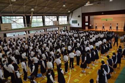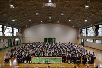 気仙沼市立大島中交流会 公開日 2018/10/17 更新日 2018/10/17 学校行事 平成30年10月5日(金)気仙沼市立大島中学校の3年生を迎え、交流会を行いました。大島中からは「目黒のさんま」、東山中からは「応援エール」を披露し、あたたかい交流会となりました。 いいね(0)