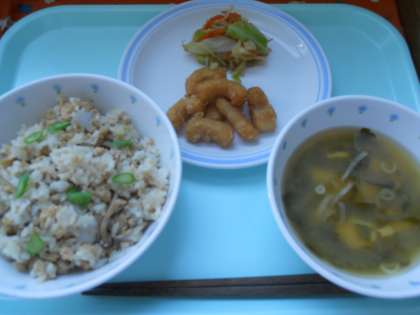 11月2日金曜日 公開日 2018/11/02 更新日 2018/11/02 給食 里芋とそぼろのご飯 いかのかりん揚げ ゆで野菜の生姜醤油 味噌汁 牛乳 産地情報 鶏肉(北海道)イカ(青森)わかめ(徳島)里芋(埼玉)しめじ(長野)いんげん(千葉)もやし(千葉)キャベツ(長野)人参(北海道)しょうが(高知)長ネギ(青森) いいね(0)